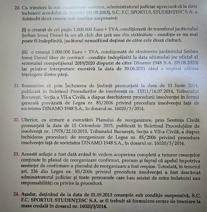 Descoperirea din acte care o poate salva pe Dinamo de plata milionului de euro către Vasile Șiman în „cazul Ionuț Șerban”. Dovada este pe masa judecătorului. FOTO EXCLUSIV