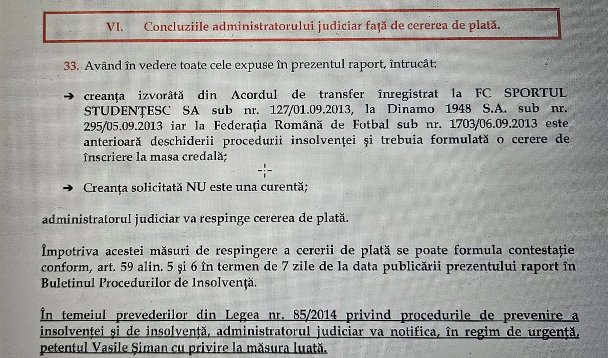 Descoperirea din acte care o poate salva pe Dinamo de plata milionului de euro către Vasile Șiman în „cazul Ionuț Șerban”. Dovada este pe masa judecătorului. FOTO EXCLUSIV