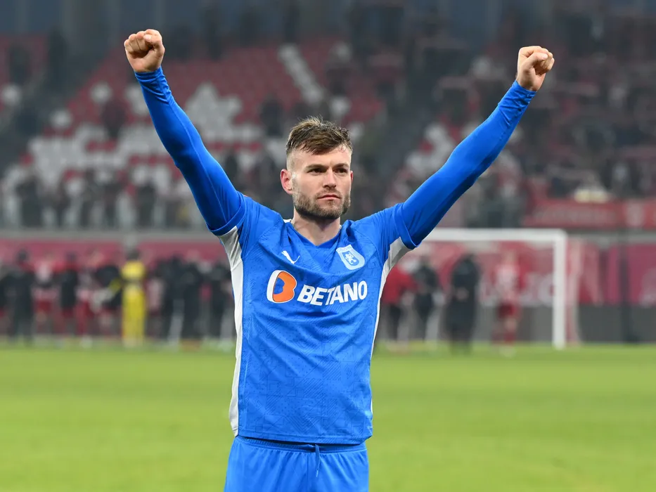 Alexandru Crețu se bucura dupa meciul de fotbal dintre Sepsi OSK Sfantu Gheorghe si Universitatea Craiova, contand pentru Superliga Superbet, desfasurat pe Sepsi Arena din Sfantu Gheorghe, duminica 4 februarie 2024. © FOTO:Razvan Pasarica/SPORT PICTURES