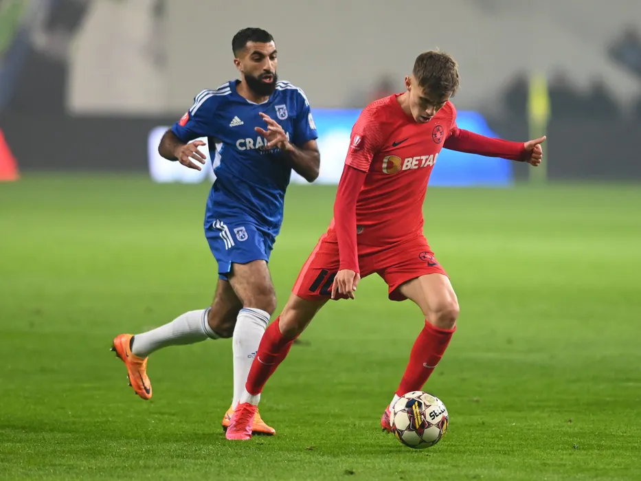 Yassine Bahassa si Octavian George Popescu in meciul de fotbal dintre FC U Craiova si FCSB, contand pentru Superliga Superbet, desfasurat pe Stadionul Ion Oblemenco din Craiova, duminica 13 noiembrie 2022. © FOTO:Razvan Pasarica/SPORT PICTURES