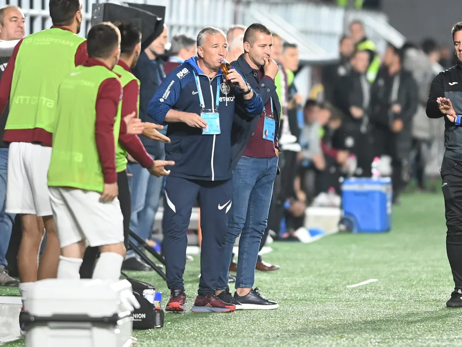 Dan Petrescu si Cristian Panin reactioneaza in meciul de fotbal dintre Rapid Bucuresti si CFR Cluj, contand pentru Play-off-ul Superligii Superbet, desfasurat pe Stadionul Rapid Giulesti din Bucuresti, duminica 1 mai 2023. © FOTO:Razvan Pasarica/SPORT PICTURES