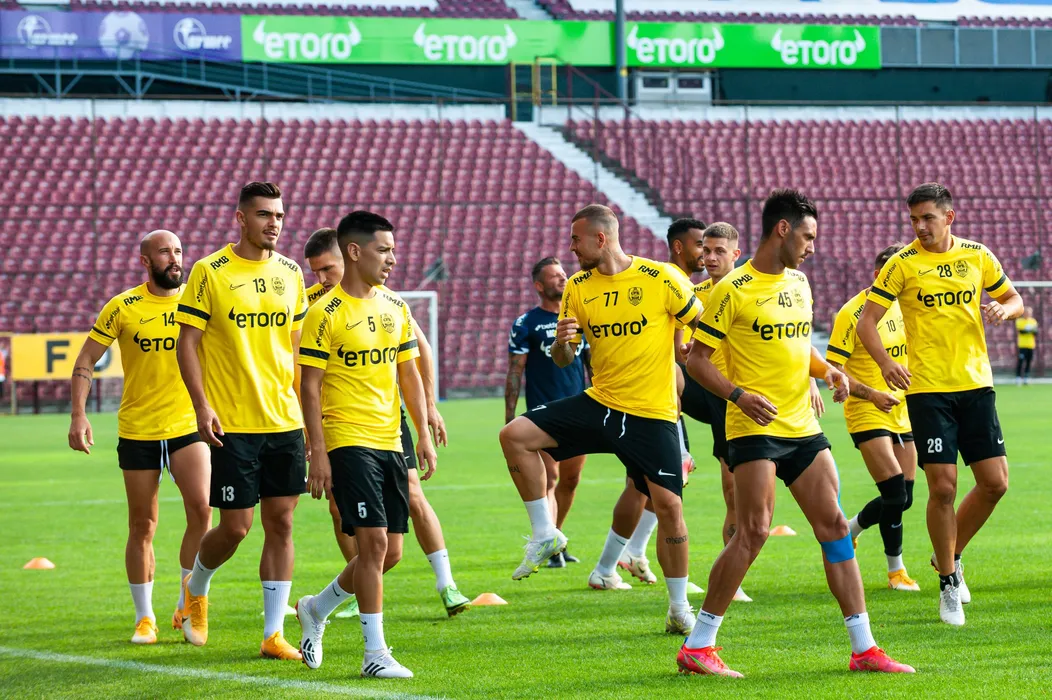 Jucatorii formatiei CFR Cluj efectueaza un antrenament pe stadionul Dr. Constantin Radulescu din Cluj-Napoca, marti, 27 iulie 2021. CFR Cluj intalneste miercuri, in mansa retur a turului II preliminar UEFA Champions League 2021/22, echipa Lincoln Red Imps FC. Meciul este programat in Gruia, de la ora 20:30. DAN HORIA TAUTAN / MEDIAFAX FOTO
