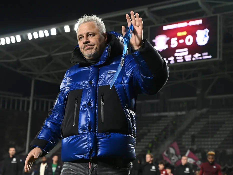 Marius Sumudica saluta publicul alături de tabela de marcaj dupa meciul de fotbal dintre Rapid Bucuresti si Farul Constanta, din cadrul Superligii Superbet, desfasurat pe Superbet Arena-Giulesti din Bucuresti, luni 21 octombrie 2024. © FOTO:Razvan Pasarica/SPORT PICTURES
