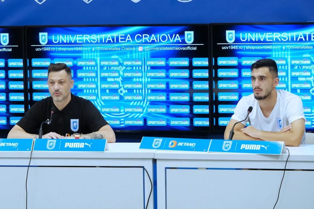 Fotbalistul Andrei Ivan si Mirel Radoi, antrenor al echipei de fotbal Universitatea Craiova, sustin o conferinta de presa, in Craiova, miercuri, 17 august 2022. REMUS BADEA / MEDIAFAX FOTO
