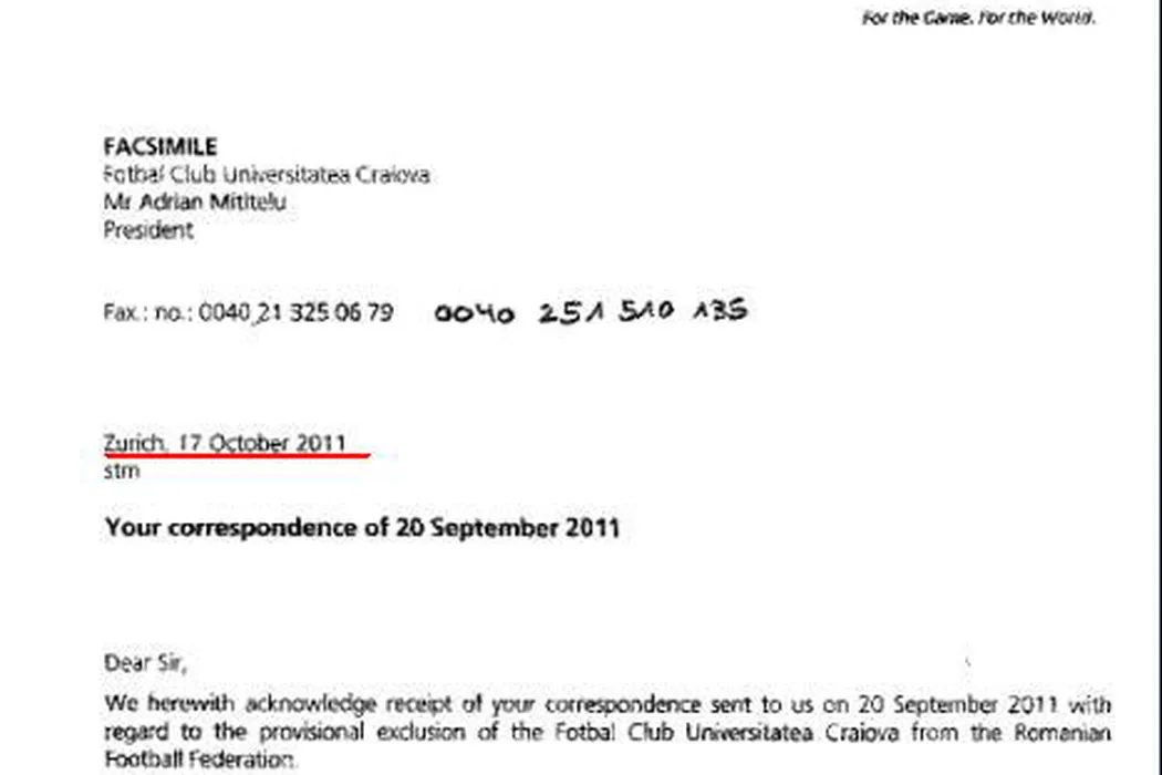 Dezafilierea Craiovei nu a fost o consecință a intervenției forurilor europene!** După modelul UEFA, și FIFA recunoaște că nu a făcut presiuni la FRF! VEZI dovada