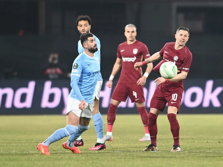 Felipe Anderson, Elseid Hysaj si Ciprian Ioan Deac in meciul de fotbal dintre CFR Cluj si SS Lazio, din cadrul UEFA Europa Conference League, desfasurat pe Stadionul Dr. Constantin Radulescu din Cluj Napoca, joi 23 februarie 2023. © FOTO:Razvan Pasarica/SPORT PICTURES
