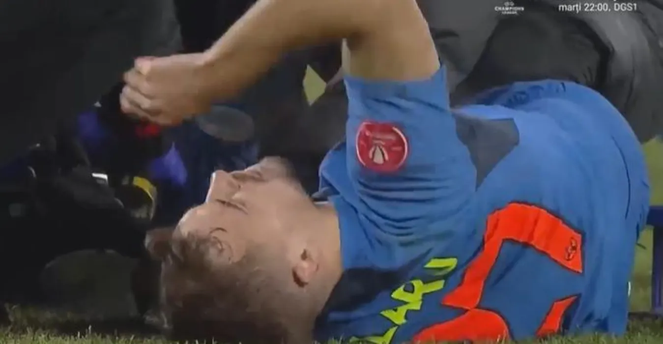 Dezastru pentru FCSB și sperietură mare pentru naționala României: Darius Olaru s-a accidentat grav și a fost scos pe brațe de medici în derby-ul cu CFR! FOTO
