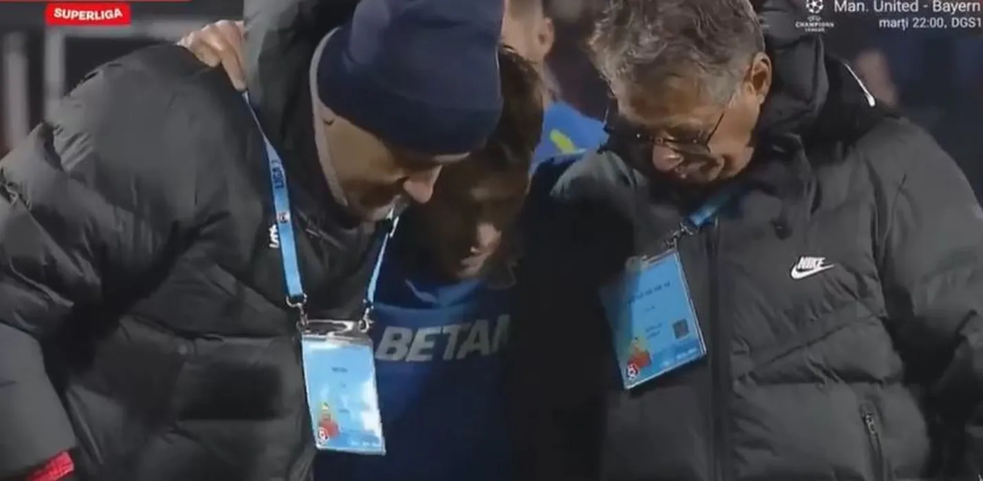 Dezastru pentru FCSB și sperietură mare pentru naționala României: Darius Olaru s-a accidentat grav și a fost scos pe brațe de medici în derby-ul cu CFR! FOTO