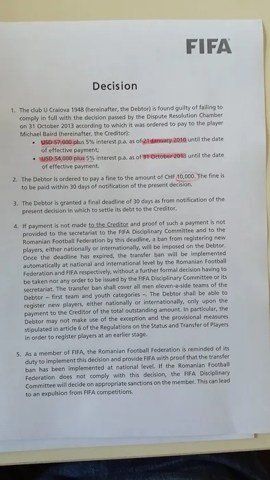Dezastru pentru FCU! Mititelu trebuie să plătească pentru Rose și Baird o sumă uriașă, după ce echipa sa a fost recunoscută drept continuatoarea Universității Craiova. EXCLUSIV! ACTE