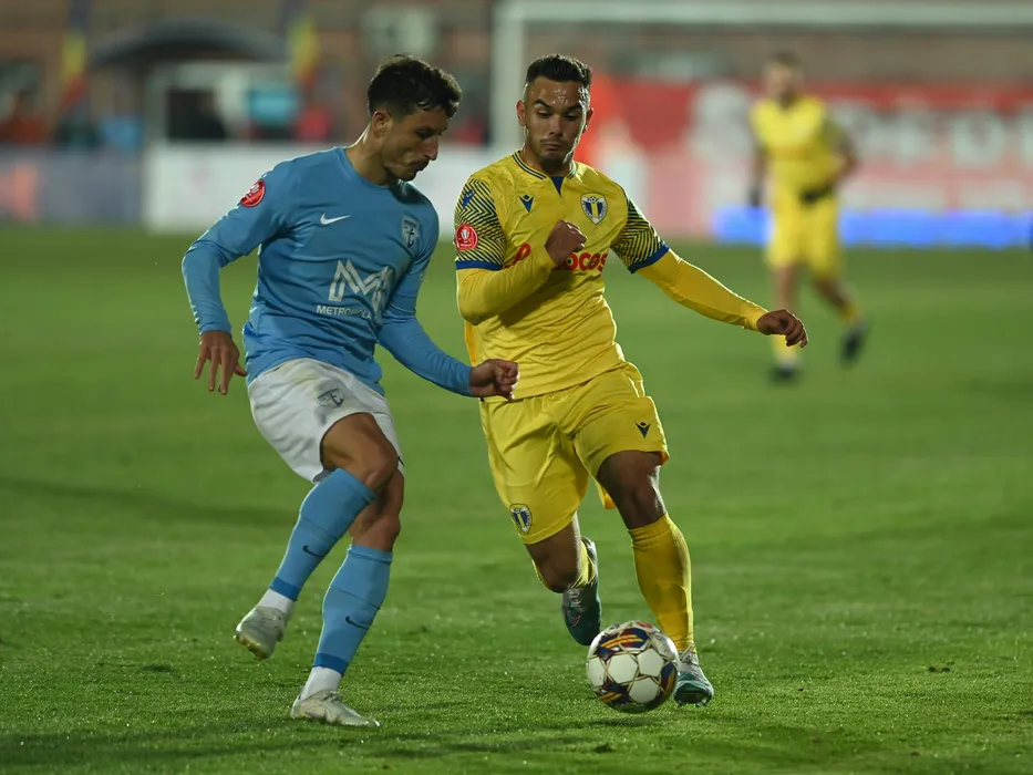 Patricio Martin Matricardi si Iustin Alexandru Raducan in meciul de fotbal dintre FC Voluntari si Petrolul Ploiesti, din cadrul Superligii Superbet, desfasurat pe Stadionul Anghel Iordanescu din Voluntari, vineri 1 decembrie 2023. © FOTO:Razvan Pasarica/SPORT PICTURES