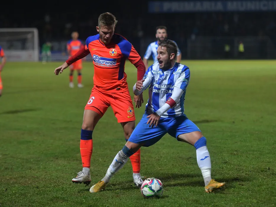 Laurentiu Bus si Denis Gratian Harut in meciul de fotbal dintre CS Hunedoara si FCSB, contand pentru Cupa Romaniei, desfasurat pe Stadionul Michael Klein din Hunedoara, miercuri 22 septembrie 2021. © FOTO:Razvan Pasarica/SPORT PICTURES