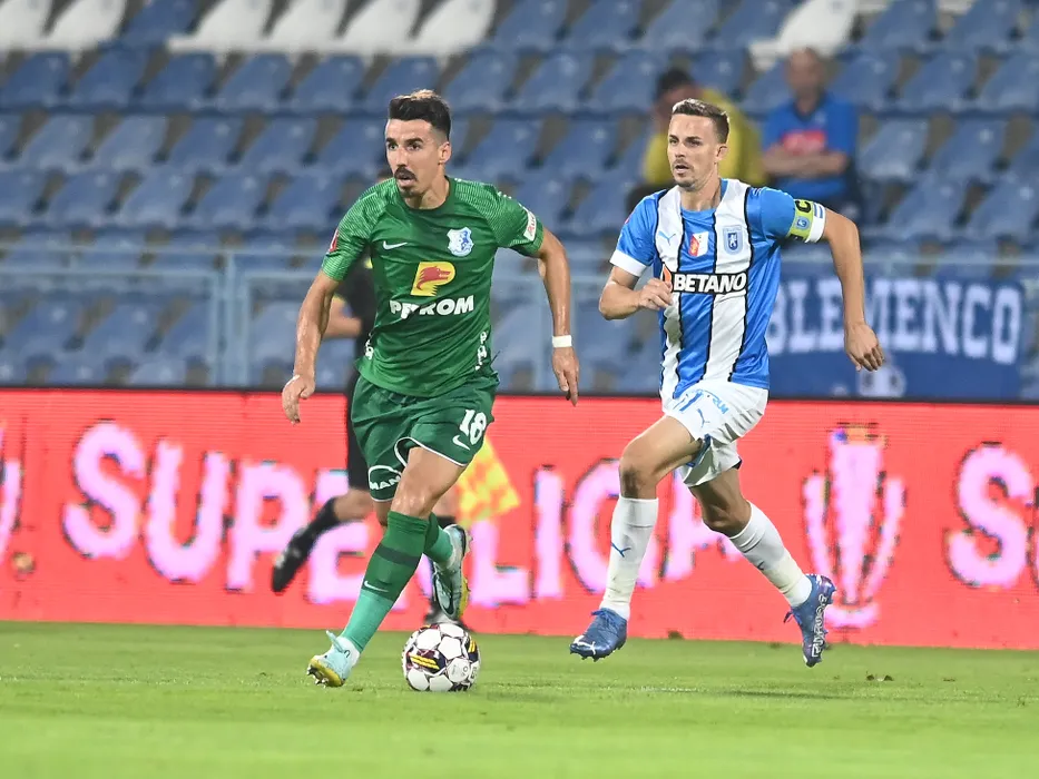 Andrei Viorel Artean si Nicusor Silviu Bancu in meciul de fotbal dintre Universitatea Craiova si Farul Constanta, contand pentru Superliga Superbet, desfasurat pe Stadionul Municipal din Drobeta Turnu Severin, luni 5 septembrie 2022. © FOTO:Razvan Pasarica/SPORT PICTURES