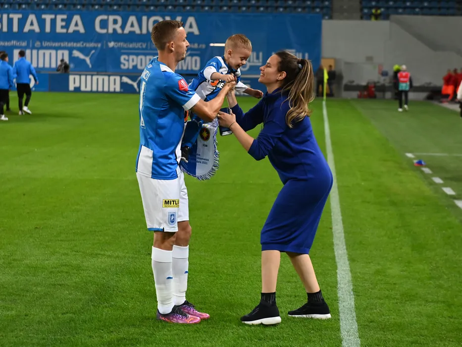 Nicusor Silviu Bancu alaturi de copilul sau la meciul de fotbal dintre Universitatea Craiova si FCSB, contand pentru Superliga Superbet, desfasurat pe Stadionul Ion Oblemenco din Craiova, duminica 18 septembrie 2022. © FOTO:Razvan Pasarica/SPORT PICTURES
