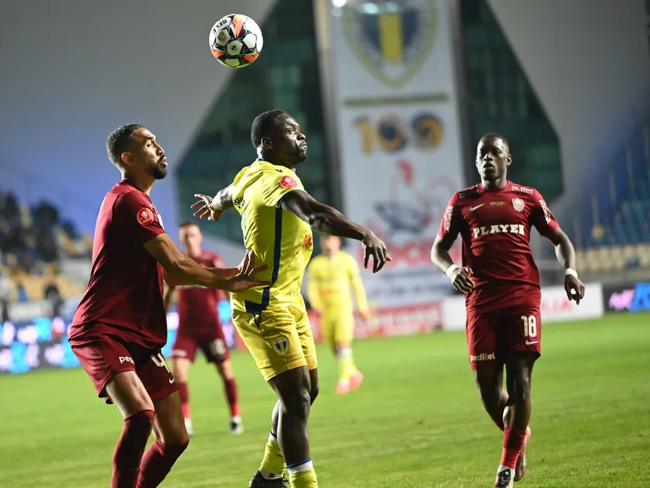 Bolgado Leonardo Da Costa, Bempah Nana Dwomoh Akosah si Abdul Kader Keita in meciul de fotbal dintre Petrolul Ploiesti si CFR Cluj, din cadrul Superligii Superbet, desfasurat pe Stadionul Ilie Oana din Ploiesti, sambata 19 octombrie 2024. © FOTO:Razvan Pasarica/SPORT PICTURES