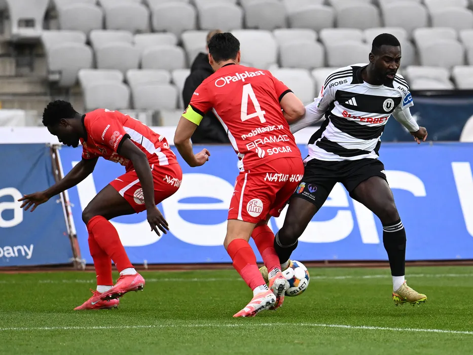 Saeed Issah, Ionut Stoica si Issouf Macalou în meciul de fotbal dintre Universitatea Cluj si FC Hermannstadt, contând pentru Superliga Superbet, desfășurat pe Cluj Arena din Cluj Napoca, duminica 7 decembrie 2025. © FOTO:Răzvan Pasarica/SPORT PICTURES