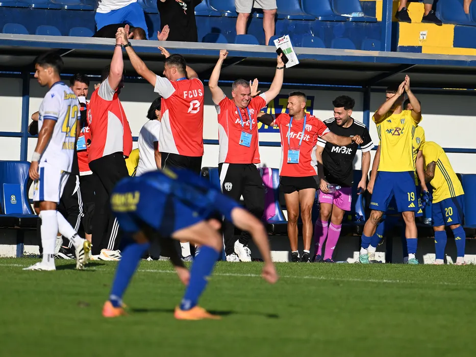 Banca ialomiteana se bucura dupa meciul dintre Unirea Slobozia si Petrolul Ploiesti, contand pentru Superliga Superbet, desfasurat pe Clinceni Arena din Clinceni, duminica 21 septembrie 2025. © FOTO:Razvan Pasarica/SPORT PICTURES