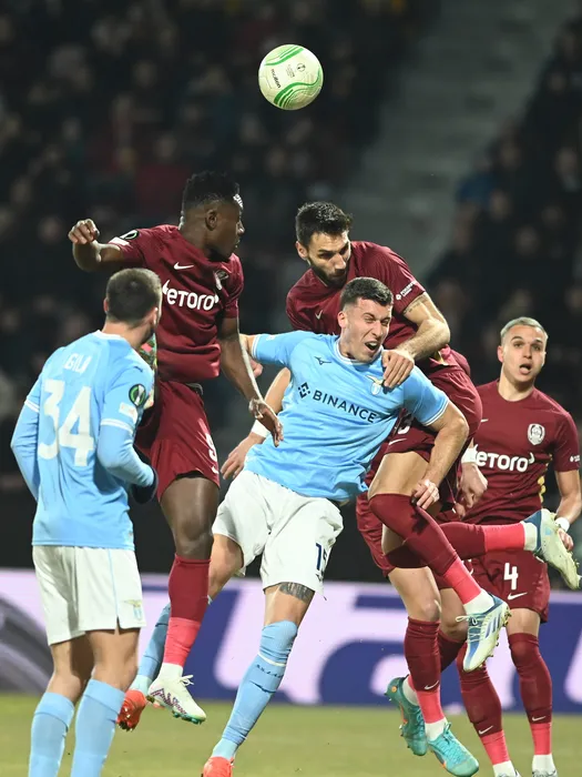 Cephas Malele, Denis Kolinger, Nicolò Casale si Cristian Marian Manea in meciul de fotbal dintre CFR Cluj si SS Lazio, din cadrul UEFA Europa Conference League, desfasurat pe Stadionul Dr. Constantin Radulescu din Cluj Napoca, joi 23 februarie 2023. © FOTO:Razvan Pasarica/SPORT PICTURES