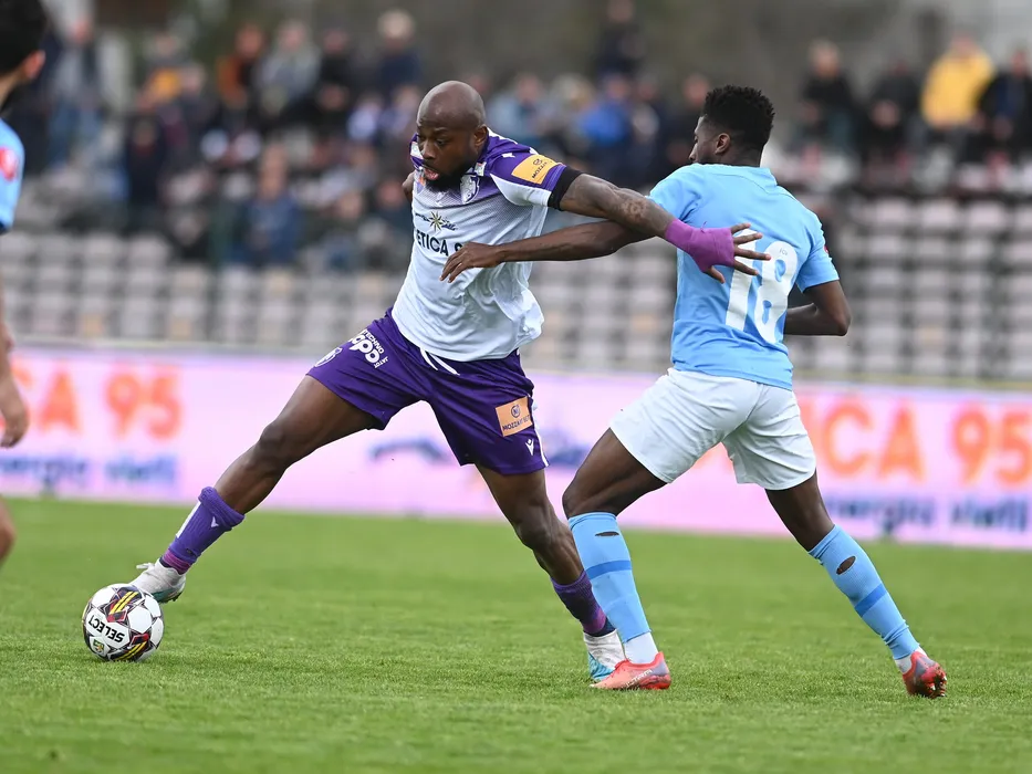 Paul Arnold Garita si Helder Luis Lopes Vieira Tavares in meciul de fotbal dintre FC Arges si FC Voluntari, contand pentru Play-out-ul Superligii Superbet, desfasurat pe Stadionul Nicolae Dobrin din Pitesti, duminica 2 aprilie 2023. © FOTO:Razvan Pasarica/SPORT PICTURES