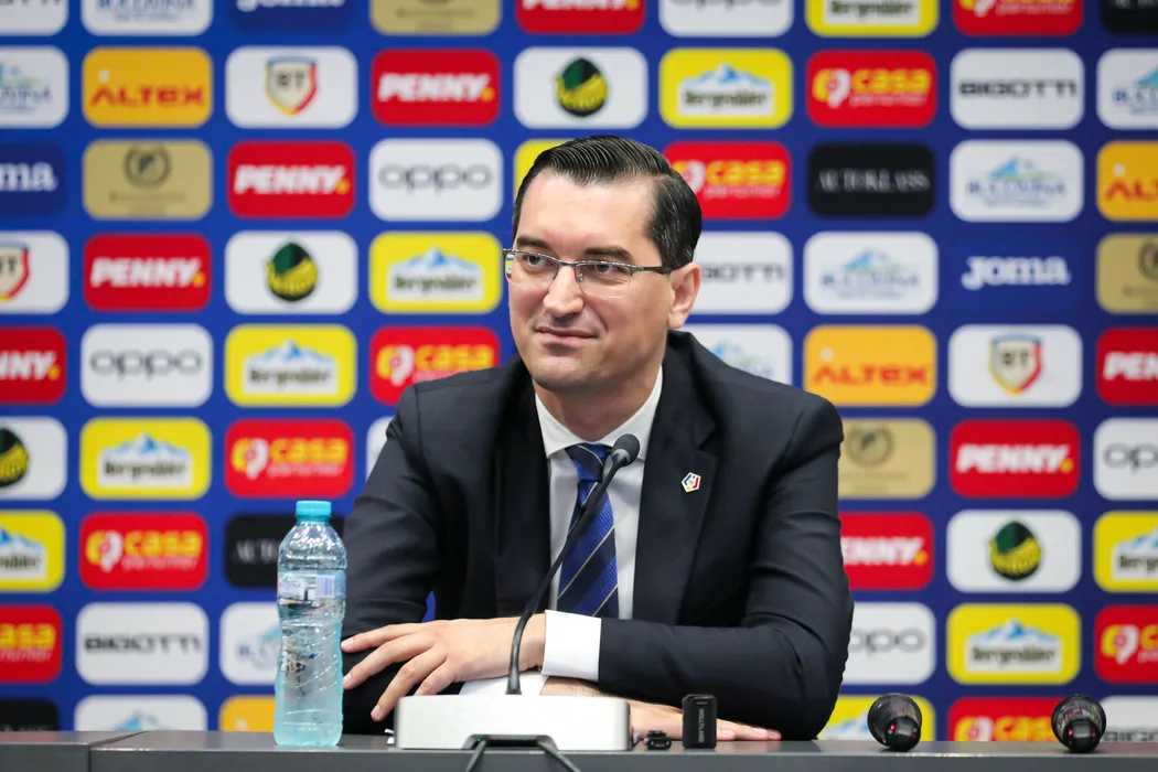 Răzvan Burleanu participă la o conferință de presa desfășurată la Casa Fotbalului din București, Sala Nicolae Dobrin, marți 6 augusti 2024. © FOTO: Vasile ANTONIO/SPORT PICTURES