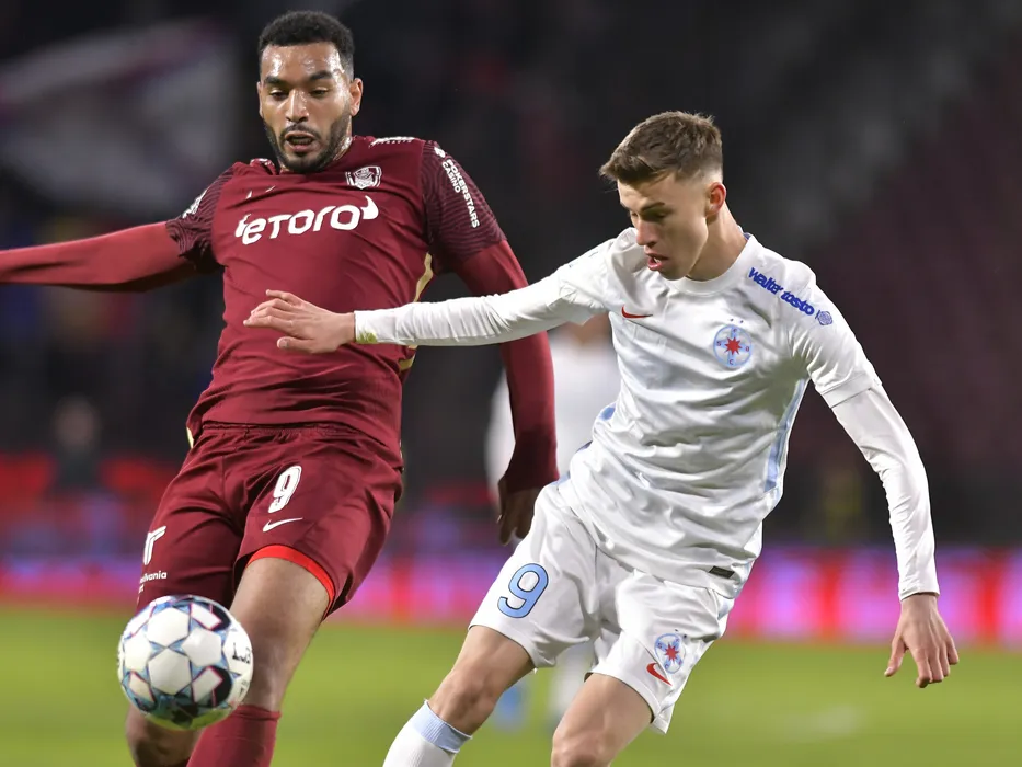 Billel Abdel Slem Omrani si Darius Dumitru Olaru in meciul de fotbal dintre CFR Cluj si FCSB, contand pentru Play-off-ul Ligii 1 Casa Pariurilor, desfasurat pe Stadionul CFR Dr. Constantin Radulescu din Cluj Napoca, duminica 17 aprilie 2022. © FOTO:Razvan Pasarica/SPORT PICTURES