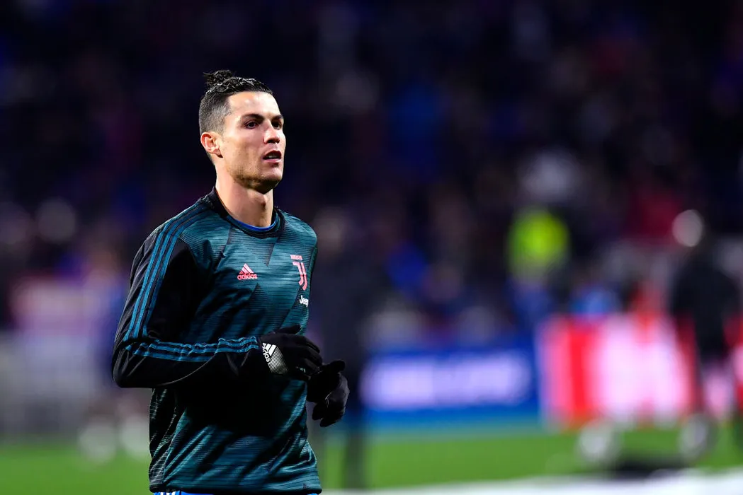 LYON, FRANCE - FEBRUARY 26: Cristiano Ronaldo of Juventus warms up before the UEFA Champions League round of 16 first leg match between Olympique Lyon and Juventus at Parc Olympique on February 26, 2020 in Lyon, France. (Photo by Aurelien Meunier/Getty Images)