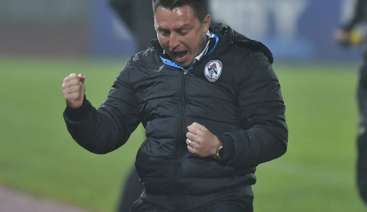 Ilie Poenaru se bucura dupa golul victoriei mediesene marcat in meciul de fotbal dintre FC Arges si Gaz Metan Medias, contand pentru Liga 1 Casa Pariurilor, desfasurat pe Stadionul Nicolae Dobrin din Pitesti, luni 6 decembrie 2021. © FOTO:Razvan Pasarica/SPORT PICTURES