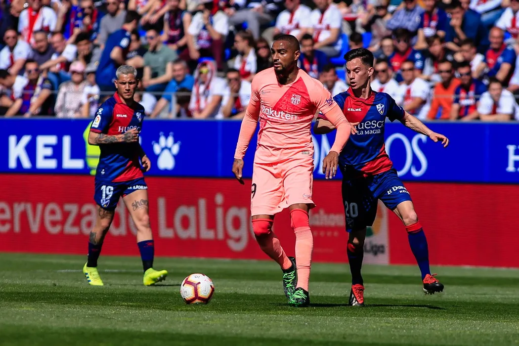 April 13, 2019 - Huesca, HUESCA, Spain - 19 Kevin Prince Boateng of FC Barcelona during the La Liga match between SD Huesca and FC Barcelona in El Alcoraz in Huesca 13 of April of 2019, Spain.,Image: 426062333, License: Rights-managed, Restrictions: , Model Release: no