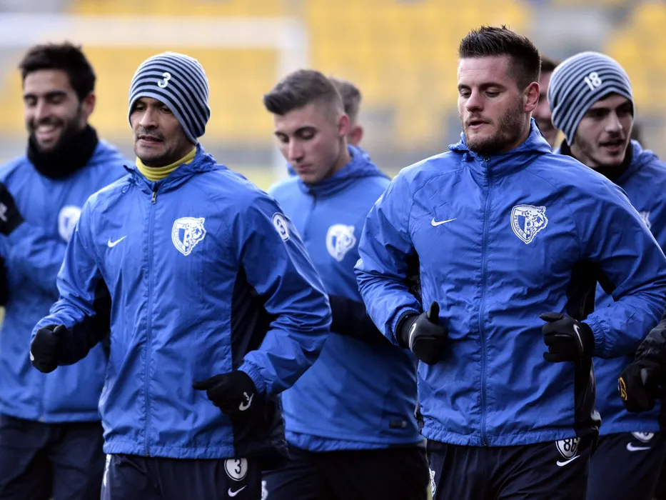 Geraldo Alves si Kristian Ipsa, de la Petrolul Ploiesti, efectueaza un antrenament, cu ocazia reunirii lotului, in Ploiesti, luni, 12 ianuarie 2015. LAURENTIU MICH / MEDIAFAX FOTO