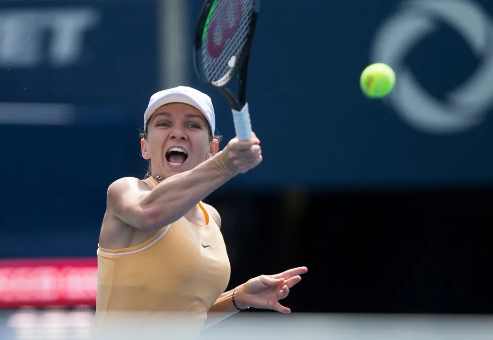 (190808) -- TORONTO, Aug. 8, 2019 () -- Simona Halep of Romania returns the ball against Jennifer Brady of the United States during the second round of women's singles match at the 2019 Rogers Cup in Toronto, Canada, Aug. 7, 2019. Simona Halep of Romania won 2-1., Image: 463153802, License: Rights-managed, Restrictions: WORLD RIGHTS excluding China - Fee Payable Upon Reproduction - For queries contact Avalon.red -