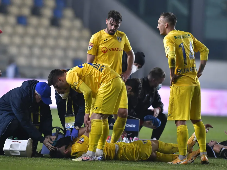 Mihai Constantinescu alaturi de fotbalistii ploiesteni Nir Lax, Romario Florin Moise si Vasile Buhaescu in meciul de fotbal dintre Petrolul Ploiesti si CSM Politehnica Iasi, contand pentru Cupa Romaniei, desfasurat fara spectatori pe Stadionul Ilie Oana din Ploiesti, marti 9 februarie 2021. © FOTO:Razvan Pasarica/SPORT PICTURES