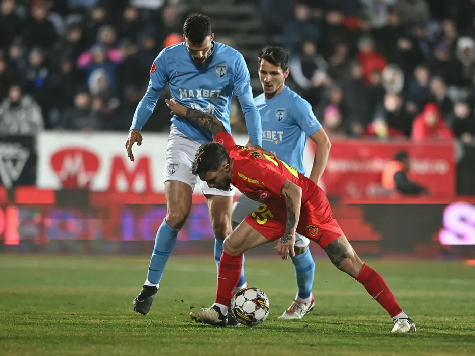 Alexandru Mihail Baluță, Patricio Martin Matricardi si Ljuban Crepulja în meciul de fotbal dintre FC Voluntari si FCSB, contând pentru Superliga Superbet, desfășurat pe Stadionul Anghel Iordanescu din Voluntari, joi 29 februarie 2024. © FOTO: Răzvan PĂSĂRICĂ/SPORT PICTURES