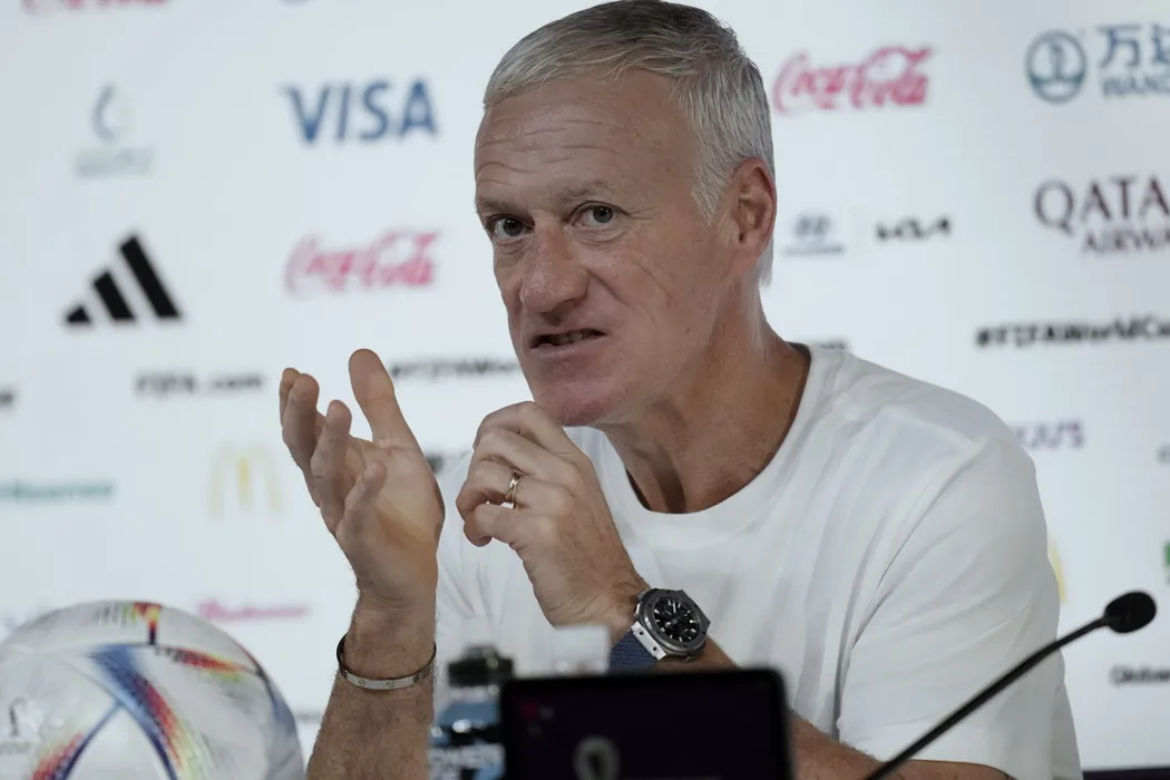 France's national team coach Didier Deschamps, answers reporters during a press conference on the eve of the group D World Cup soccer match between France and Australia, in Doha, Qatar, Monday, Nov. 21, 2022. (AP Photo/Christophe Ena)