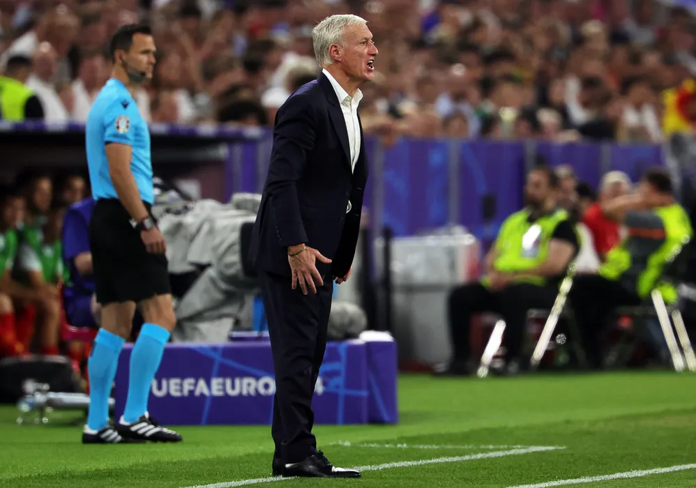 09 July 2024, Bavaria, Munich: France coach Didier Deschamps reacts on the touchline during the UEFA Euro 2024 Semi-final soccer match between Spain and France at Munich Football Arena. Photo: Christian Charisius/dpa