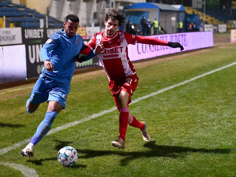 Georgi Velikov Pashov si Diego Fabbrini in meciul de fotbal dintre Academica Clinceni si Dinamo Bucuresti, contand pentru Liga 1 Casa Pariurilor, desfasurat pe Stadionul Municipal Ion Comsa din Calarasi, duminica 20 decembrie 2020. © FOTO:Razvan Pasarica/SPORT PICTURES