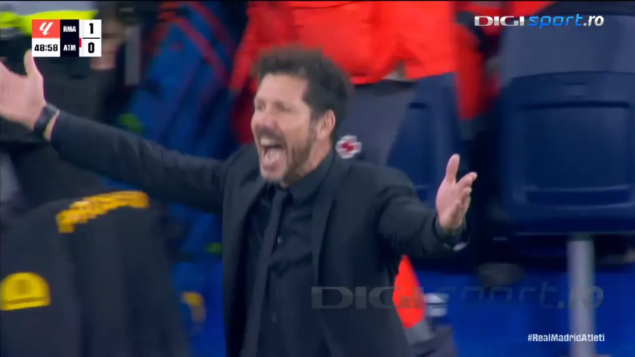 Diego Simeone, nervos pe decizia arbitrilor în meciul Real Madrid - Atletico Madrid Captură DigiSport