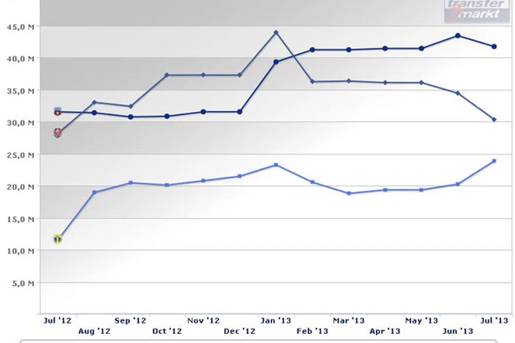 Diferență istorică Steaua vs rivale. CFR în scădere drastică, Petrolul campioana creșterii. Cât valorează echipele care se bat pentru titlu în Liga 1