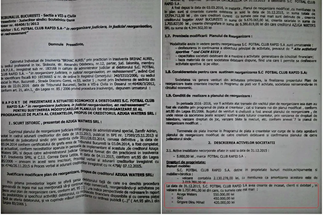 Dihonie la Rapid. Patronul Moraru ar modifica actele care arată că Dinu „Vamă” datorează clubului 100.000 de euro, dar administratorii spun că e ilegal. Dovada că restanța lui „Vamă” a ajuns în tribunal