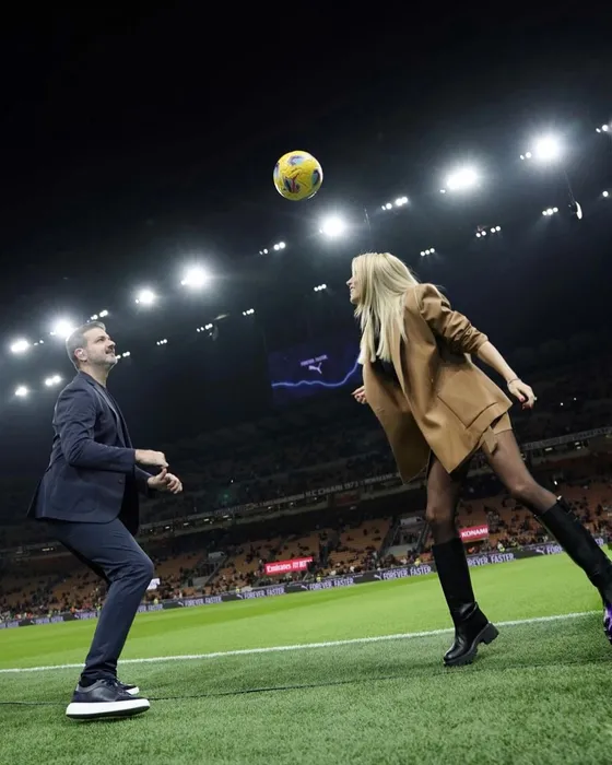 Diletta Leotta a surprins toți spectatorii prezenți pe stadion! Ce s-a văzut în momentul în care a început să jongleze, în fustă și pe tocuri. Jurnalista, aplaudată la scenă deschisă | GALERIE FOTO