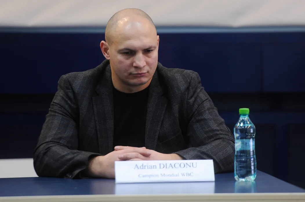 Adrian Diaconu, campion mondial WBC, participa la conferinta de presa in cadrul careia este prezentat noul sponsor si doctor consultant pe probleme de ortopedie si traumatologie al Federatiei Romane de Box - medicul chirurg Uwe Fuhrmann (nu este in imagine), in Bucuresti, luni, 2 februarie 2015. BOGDAN IORDACHE / MEDIAFAX FOTO