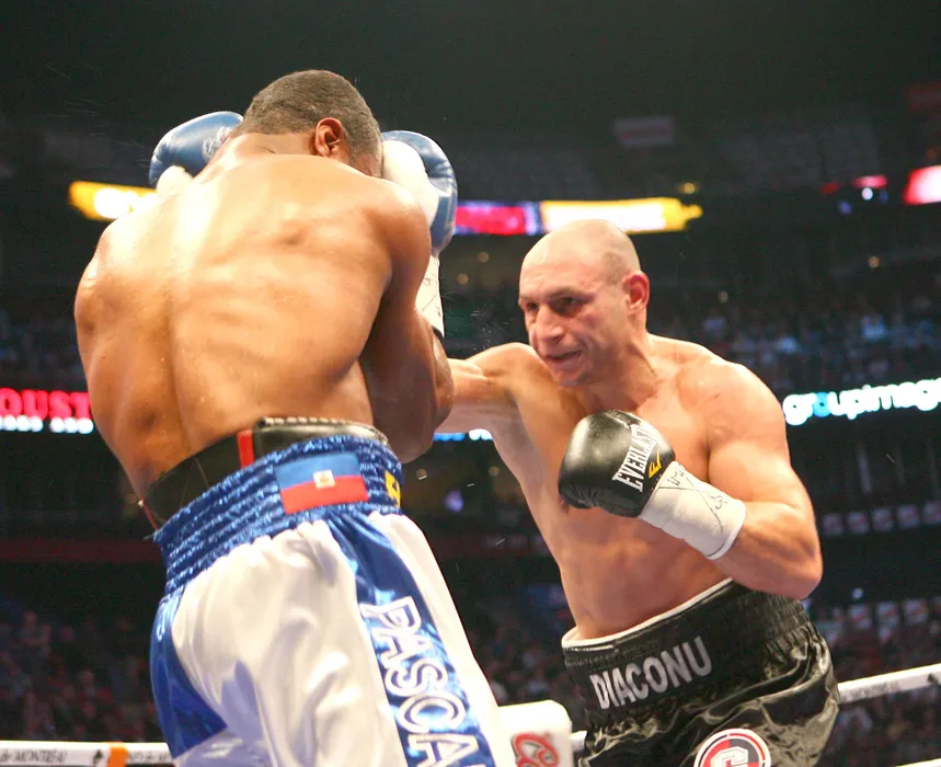 Adrian Diaconu (D) lupta impotriva canadianului Jean Pascal pentru titlul mondial la categoria semigrea, versiunea WBC, sambata, 12 decembrie , 2009, in Montreal, Canada. Pascal a fost declarat castigator la puncte, in urma deciziei celor trei arbitri-judecatori, dupa meciul desfasurat pe durata a 12 reprize. GEORGE FILIP / MEDIAFAX FOTO
