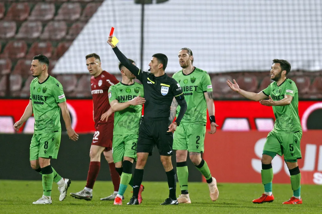 Arbitrul Marcel Birsan conduce meciul de fotbal CFR Cluj - Dinamo din etapa 29 a Ligii 1, disputat pe stadionul Dr. Constantin Radulescu din Cluj-Napoca, luni, 5 aprilie 2021. . SPORTS PIC / MEDIAFAX FOTO