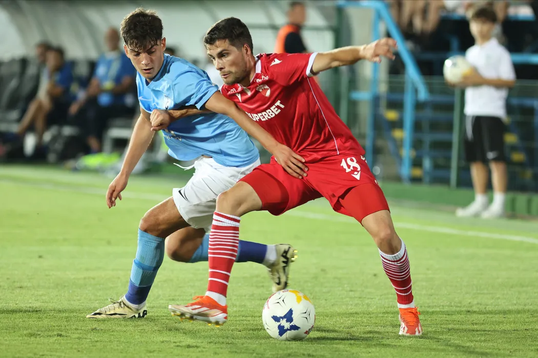 Alberto Soro Alvarez și Alexandru Șuteu in meciul de fotbal dintre FC Voluntari si Dinamo București, din cadrul Cupei României Betano, desfasurat pe Stadionul Anghel Iordanescu din Voluntari, miercuri 28 august 2024. © FOTO: Gică FLUȘTER/SPORT PICTURES