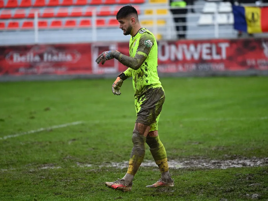 Dorian Railean plin de noroi la meciul de fotbal dintre CS Tunari si Chindia Targoviste, contand pentru Liga a-2-a Casa Pariurilor, desfasurat pe Stadionul din Tunari, sambata 25 noiembrie 2023. © FOTO:Razvan Pasarica/SPORT PICTURES
