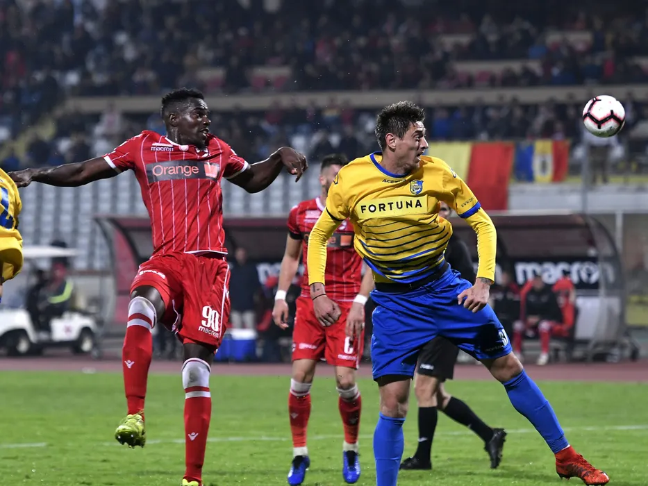 Teddy Mezague si Alin Seroni in meciul de fotbal dintre Dinamo Bucuresti si Dunarea Calarasi, din cadrul Ligii 1 Betano, desfasurat pe Stadionul Dinamo din Bucuresti, luni 22 octombrie 2018. © FOTO Razvan Pasarica/SPORT PICTURES