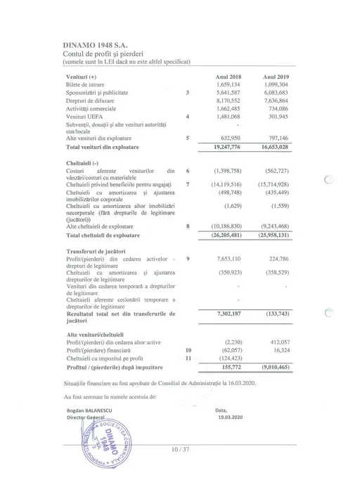 Dinamo a publicat toate informațiile financiare anuale. Câți bani a încasat Ionuț Negoiță în 2019 | FOTO