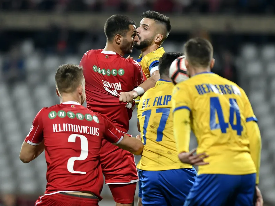 Mattia Montini si Alin Dobrosavlevici in meciul de fotbal dintre Dinamo Bucuresti si Dunarea Calarasi, contand pentru Liga 1 Betano, desfasurat pe Stadionul Dinamo din Bucuresti, vineri 8 martie 2019. © FOTO Razvan Pasarica/SPORT PICTURES