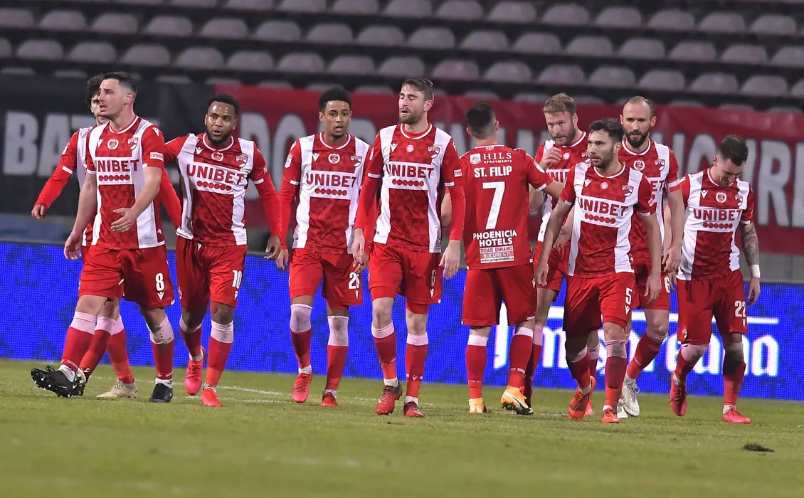Bucurie a fotbalistilor dinamovisti dupa un gol marcat cu Paul Viorel Anton, Marco Ehmann, Adam Nemec, Alexandru Ilie Rauta, Ante Puljic, /d26/ si Deian Cristian Sorescu in meciul de fotbal dintre Dinamo Bucuresti si FCSB, contand pentru Cupa Romaniei, desfasurat fara spectatori pe Stadionul Dinamo din Bucuresti, miercuri 10 februarie 2021. © FOTO:Razvan Pasarica/SPORT PICTURES