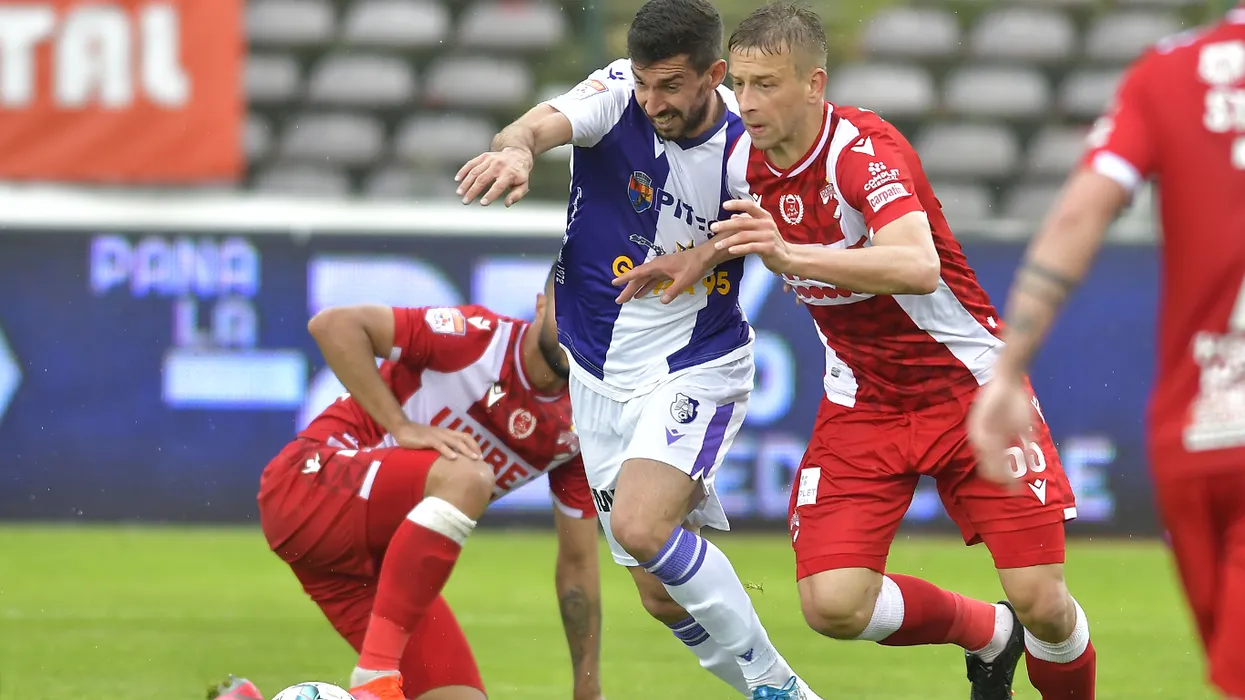 Ionut Eugen Nastasie si Janusz Krzysztof Gol in meciul de fotbal dintre FC Arges si Dinamo Bucuresti, contand pentru Play-off-ul Ligii 1 Casa Pariurilor, desfasurat fara spectatori pe Stadionul Nicolae Dobrin din Pitesti, duminica 16 mai 2021. © FOTO:Razvan Pasarica/SPORT PICTURES