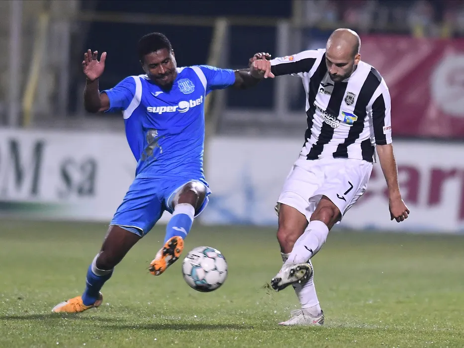 Luis Carlos Almada Soares si Dario Canadija in meciul de fotbal dintre Astra Giurgiu si CSM Politehnica Iasi, contand pentru Liga 1 Casa Pariurilor, desfasurat fara spectatori pe Stadionul Marin Anastasovici din Giurgiu, sambata 24 octombrie 2020. © FOTO:Razvan Pasarica/SPORT PICTURES