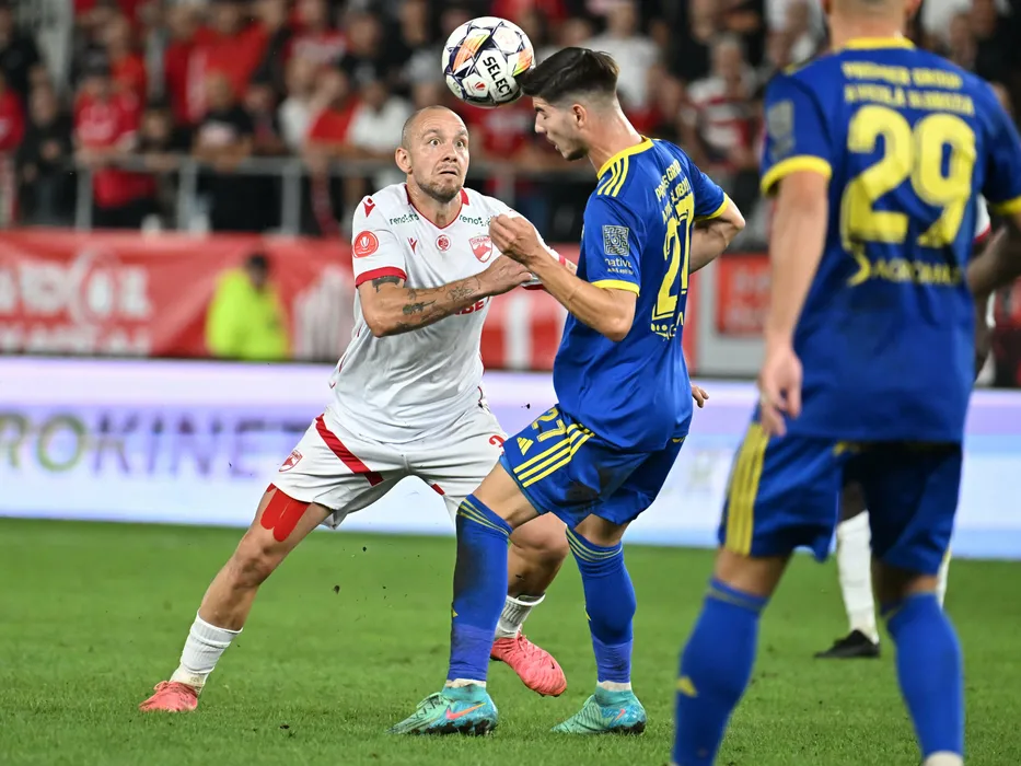 Patrick Haakon Olsen si Stefan Cristinel Pacionel in meciul de fotbal dintre Dinamo Bucuresti si Unirea Slobozia, din cadrul Superligii Superbet, desfasurat pe Stadionul National Arcul de Triumf din Bucuresti, vineri 13 septembrie 2024. © FOTO:Razvan Pasarica/SPORT PICTURES